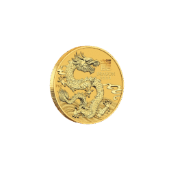 The dragon, the fifth animal in the lunar zodiac, is believed to bestow qualities like bravery, ambition, intelligence, and good fortune on those born in its years—1952, 1964, 1976, 1988, 2000, 2012, and 2024. This tenth ounce gold coin contains 3.11g of fine, 999.9 gold, with a face value of 15 Australian Dollars. The smaller size is an excellent way to buy one of these beautiful coins at a lower cost.