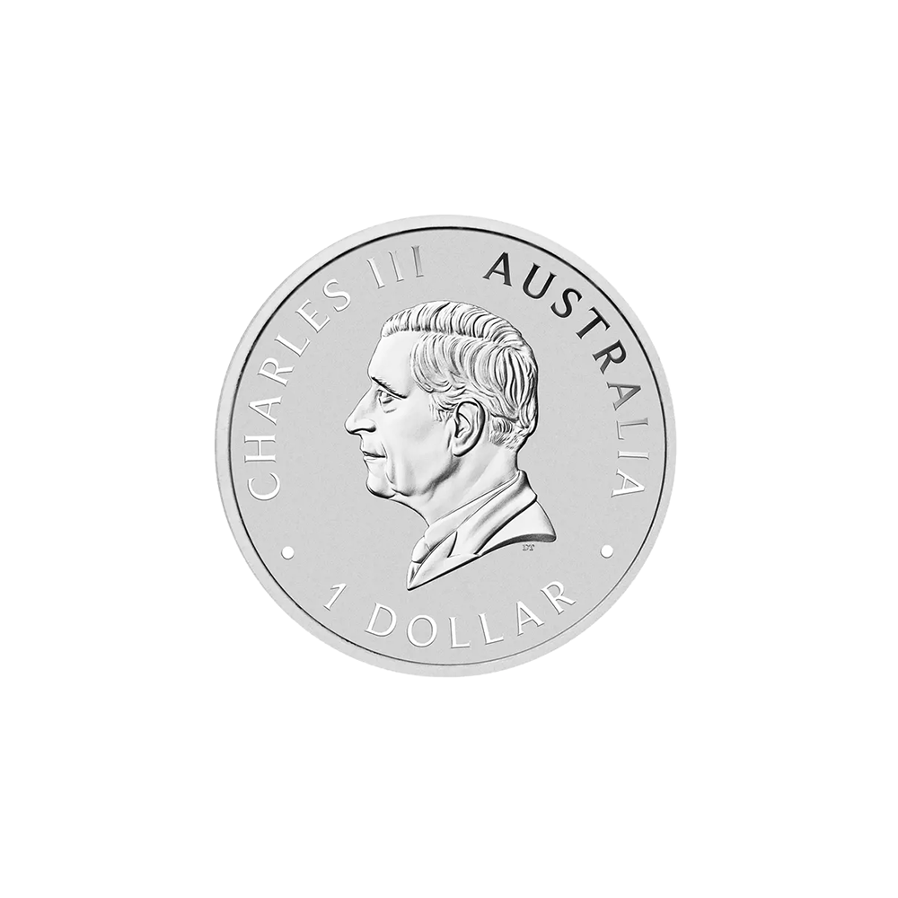 The obverse of the coin bears a portrait of His Majesty King Charles III, with the coin’s monetary denomination shown below. This is the first kookaburra coin to feature King Charles’ effigy.