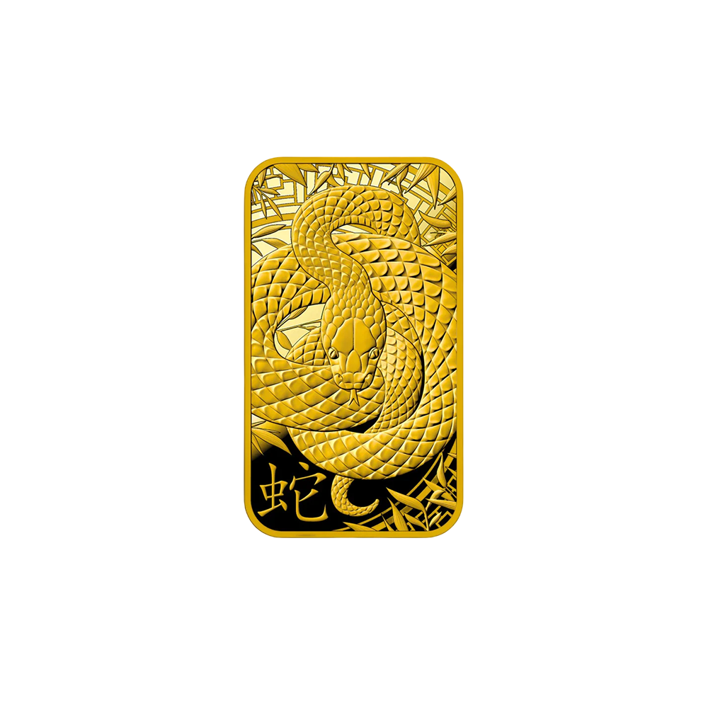 Featuring the iconic Lunar Snake, this 1 gram gold bar pays tribute to people born in the sixth year of the 12 year Chinese Zodiac cycle. People born under the year of the snake are seen to be intelligence, wise, and enigmatic. They tend to have natural charm and intuition, and are ambitious.